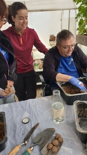 - Limpieza y preparación de bancales, plantación de flores, hortalizas y aromáticas, y creación de semilleros medicinales.